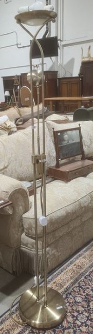 Modern standard lamp with integral spotlamp in brushed finish column