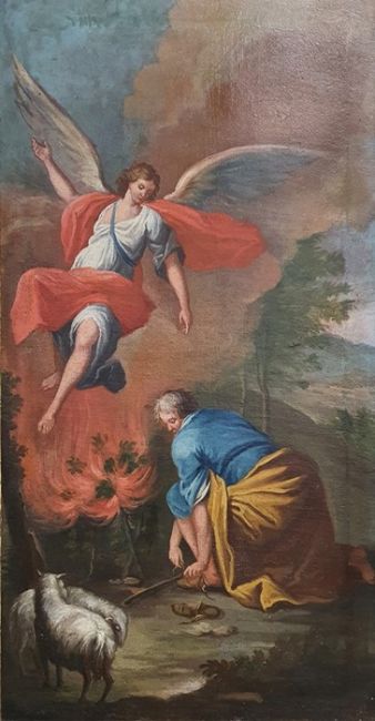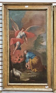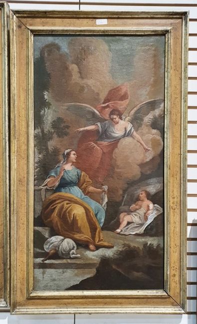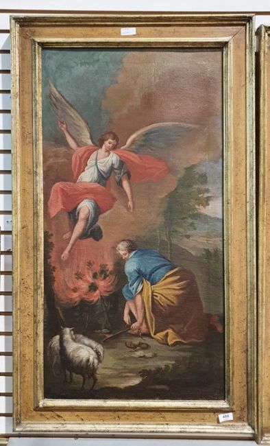 19th century school Pair of oils on canvasBiblical scenes, unsigned, 84cm x 43cm (2)