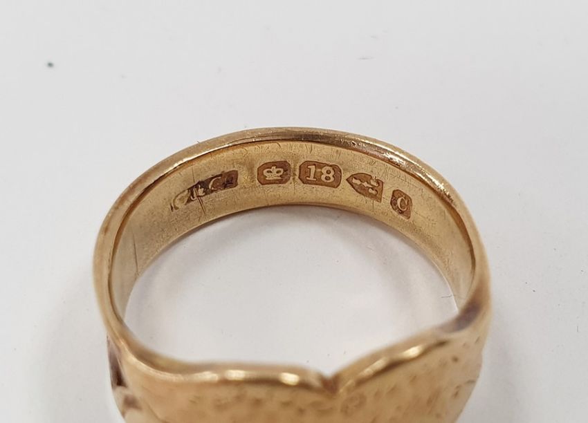 Victorian 18ct gold memorial ring, Chester 1886 with engraved dedication (rubbing to engraving and loss to enamel), size M, approx. 3g