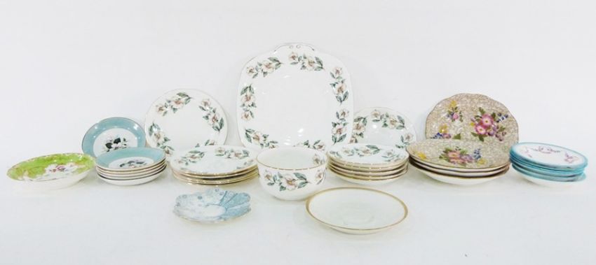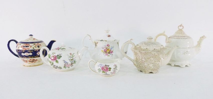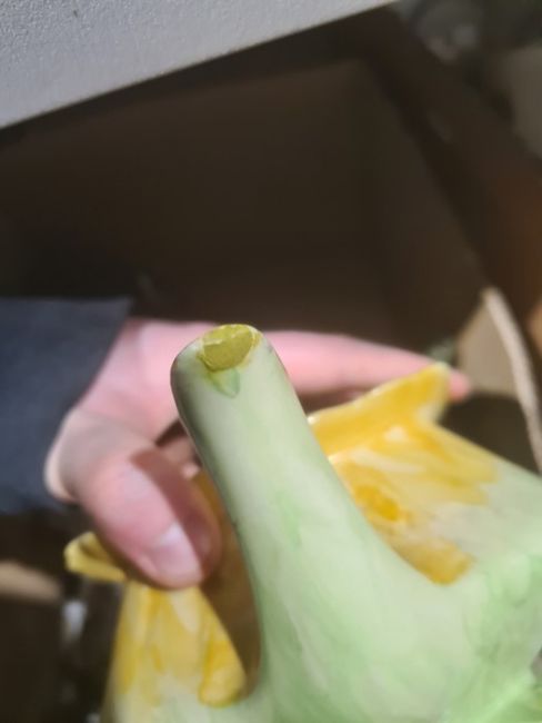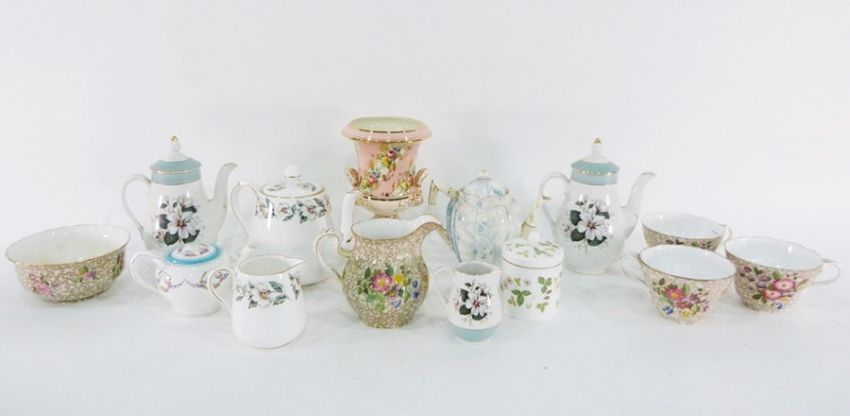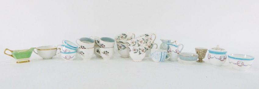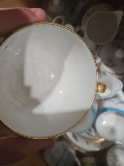 There is some general wear and tear to items in the lot. One of the teapot spouts has been repaired. A couple of the cups have cracks to them. See attached images.
