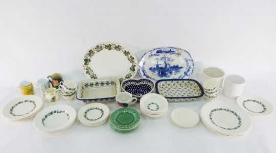 Resin models of Cairn and Yorkshire Terriers and a Jack Russell, assorted ceramics to include Wedgwood Stratford, Bunnykins mug, serving dishes and assorted collectables (2 boxes)