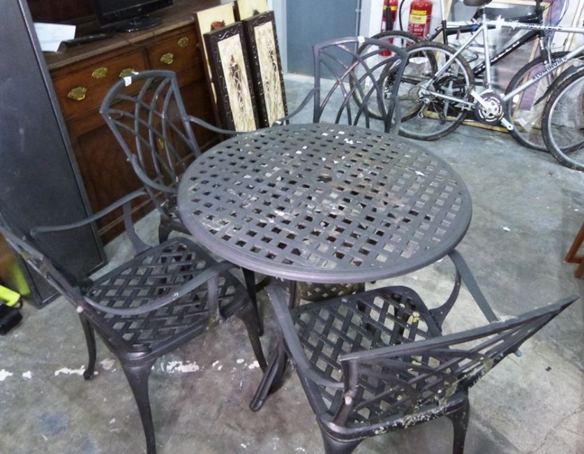 Aluminium black painted garden table with four chairs (5)