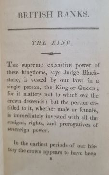 [ Lamb, Charles]  " The Book of Ranks and Dignities of British Society - chiefly Intended for the Instruction of YOUNG PERSONS" printed for  Tabart & co. at the Juvenile and School Library ( 1805) frontis , title-page. dedication, 24 hand coloured engravings , Richard Phillips catalogue at the back , publisher's boards , half leather, gilt titles , corners bumped and edges all a little chipped. BOOKS NOT COLLATED UNLESS OTHERWISE STATED, PLEASE ENSURE YOU ARE SATISFIED BEFORE YOU BID