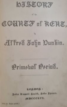 Dunkin, Alfred John " History of the County of Kent - Primeval Period" John Russell Smith  1856, including a bookseller's letter, three original letters to John Dunkin, one from Charles Roach Smith ( antiquarian) dated in the 1860's, rebound full black leather, dentelles, marbled endpapers, gilt title and date to back stripBOOKS NOT COLLATED UNLESS OTHERWISE STATED, PLEASE ENSURE YOU ARE SATISFIED BEFORE YOU BID