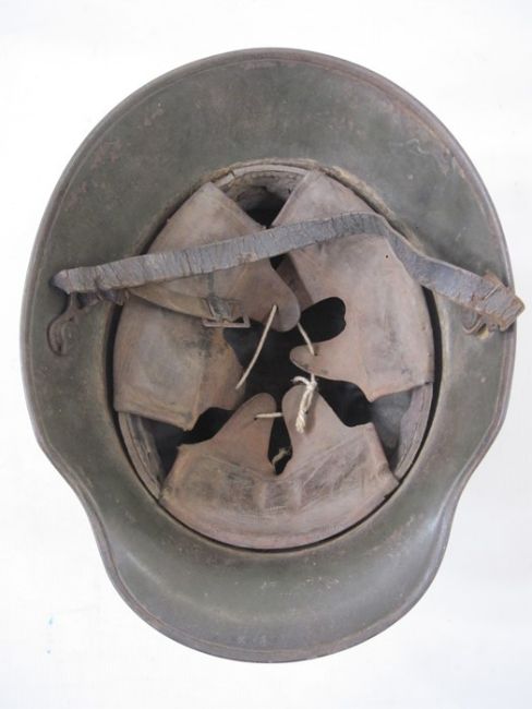 WWI German M16 helmet with leather liner and chin strap