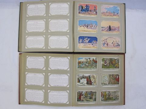 Two albums of trade cards 'Chromos Liebig Chromo's' including 'De Koppoortigen', 'De Kalevala', 'De Dag Van Een Rijk Romein', 'Schelpen Van Onze Kust', 'Erasmus', 'Eigenaardige Kruipdieren' and many other titles (2)