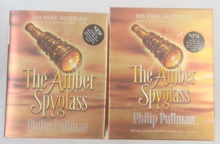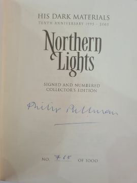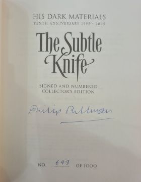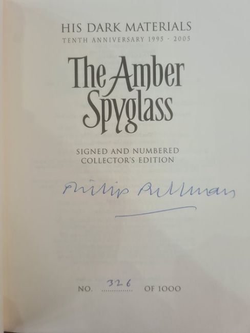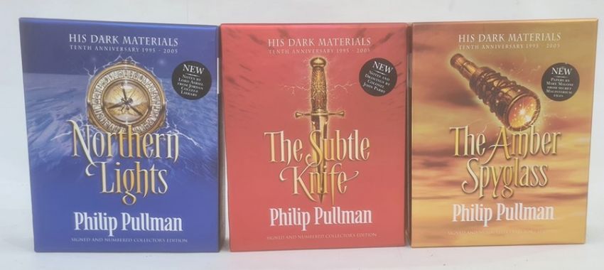 Pullman, Philip"His Dark Materials, 10th Anniversary 1995-2005", signed and numbered collector's edition, 'Northern Lights' 765/1000, 'The Subtle Knife' 693/1000 and 'The Amber Spyglass' 326/1000, all published by Scholastic Press 2005, all with dj, within their original slip cases BOOKS NOT COLLATED UNLESS OTHERWISE STATED, PLEASE ENSURE YOU ARE SATISFIED BEFORE YOU BID