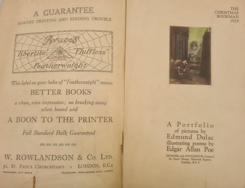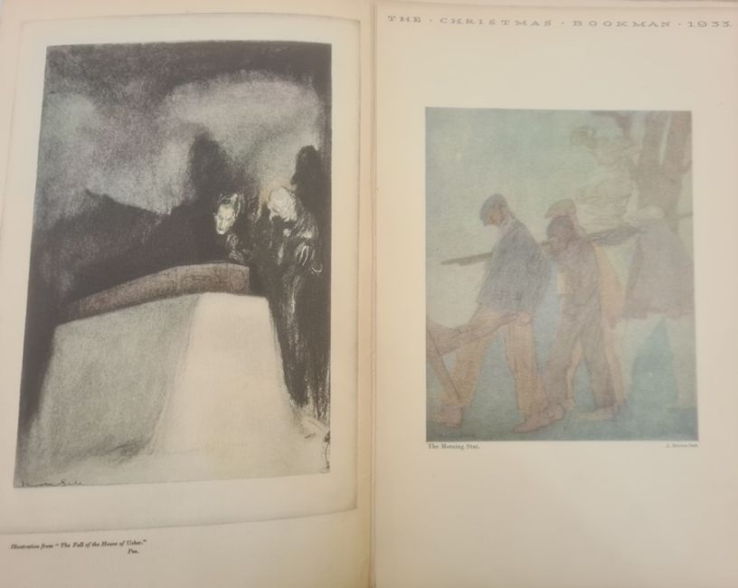 The Bookman Special Christmas Number 1929 with a portfolio of pictures by Edmund Dulac, illustrating poems by Edgar Allen Poe, Hodder & Stoughton, limp covers, advertisements, folio The Bookman Christmas 1933 with a portfolio of paintings and drawings by J Morton-Sale, illustrations, advertisements, the front limp cover separating, folio The Bookman Christmas 1931 with a portfolio 'The Old Wives Tale' by Arnold Bennett, pictured by John Morton-Sale, numerous other illustrations, advertisements, etc, limp pictorial cover BOOKS NOT COLLATED UNLESS OTHERWISE STATED, PLEASE ENSURE YOU ARE SATISFIED BEFORE YOU BID