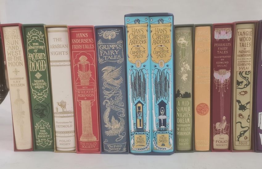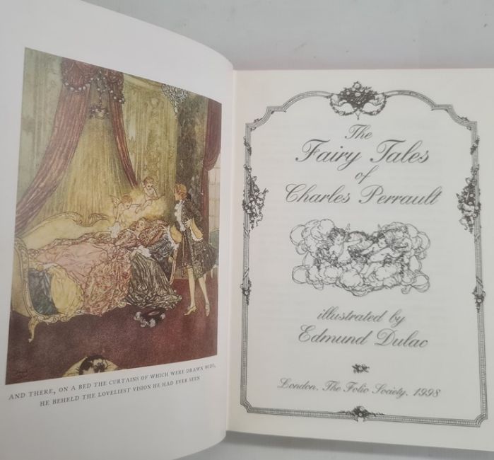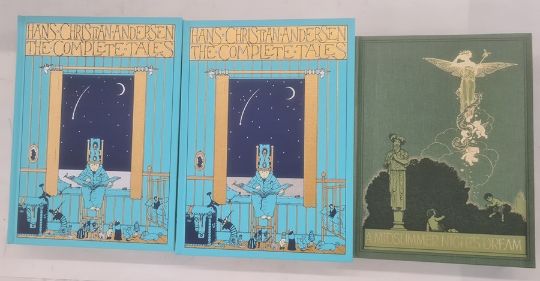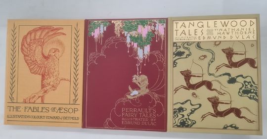 Folio Society -  Andrew Lang " The Violet Fairy Book" " The Yellow Fairy Book" " The Green Fairy Book " " The Pink Fairy Book" " The Red Fairy Book" " The Blue Fairy Book" all within their original slip cases, Nielsen K " East of the Sun and West of the Moon" E.J.  Detmold " The Arabian Nights " , Roger Lancelyn Green "The Adventures of Robin Hood" W. Heath Robinson " Hans Andersen Fairy Tales"  Arthur Rackham " Grimms's  Fairy Tales" ,  Hans Christian Andersen " Complete Tales " 2 vols in one slipcase, W. Heath Robinson " A Midsummers NIght's  Dream " E.J. Detmold " Aesops' Fables",  Edmund Dulac " Perrault's Fairy Tales". Dulac " Tanglewood  Tales" , all in original slip cases ( 16)BOOKS NOT COLLATED UNLESS OTHERWISE STATED, PLEASE ENSURE YOU ARE SATISFIED BEFORE YOU BID
