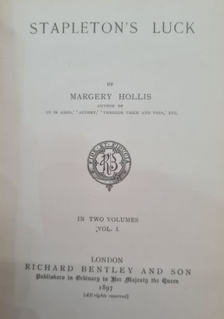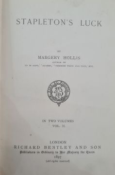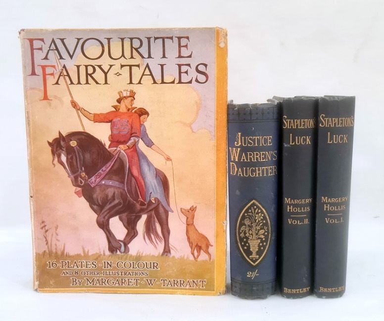 Tarrant, Margaret W "Favourite Fairytales", Ward Locke & Co, colour and sepia plates, pictorial boards, dj not price clippedHollis, Marjory"Stapleton's Luck", Richard Bentley 1897, 2 vols Birrell, Olive"Justice Warren's Daughter ...", Remington & Co, 2 vols bound in one, blue cloth, gilt titles (4) BOOKS NOT COLLATED UNLESS OTHERWISE STATED, PLEASE ENSURE YOU ARE SATISFIED BEFORE YOU BID
