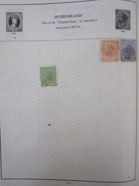 Two albums 7 1d red covers and 1864 (worn cover with 2 x 2d blues, a few Nyassa and Egypt stamps, Centurion album sparsely filled with earlier issues including Queensland V 60 green over printed specimen