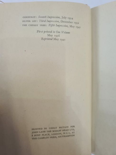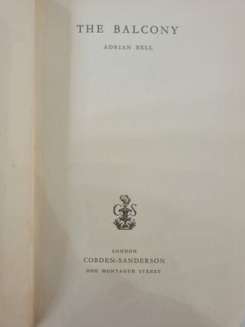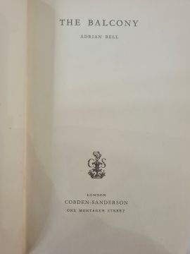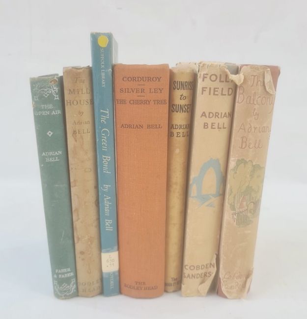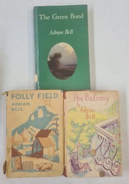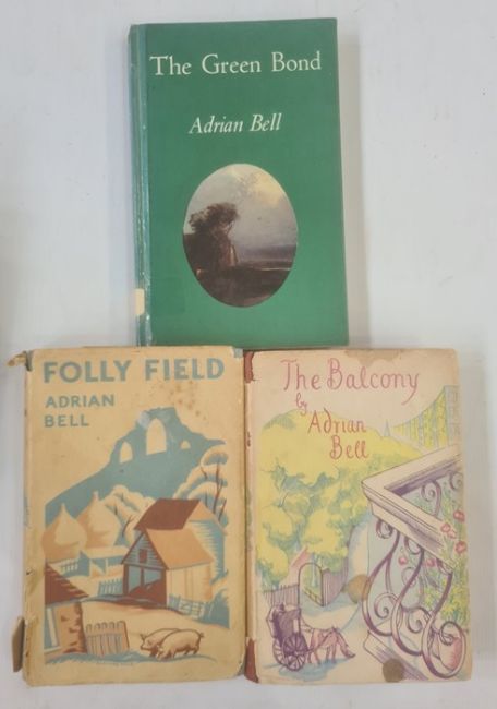 Bell, Adrian "The Balcony", Cobden-Sanderson, 2nd impression 1934, inscription on ffep dated 1935, pink cloth, some staining to the top, dj designed by John Nash, not price clipped"Folly Field", Cobden-Sanderson, 1933, name inscribed on ffep, turquoise cloth, dj not price clipped, jacket designed by Clifford Webb, rather chipped and some splitting on the backstrip and other titles to include "Sunrise to Sunset" 3 vols in 1, "Corduroy", "Silver Lee" and "The Cherry Tree"  "The Mill House", "The Open Air" and "The Green Bond", The Boydell Press 1976, ep missing, library copy, stamps on half-title (7) BOOKS NOT COLLATED UNLESS OTHERWISE STATED, PLEASE ENSURE YOU ARE SATISFIED BEFORE YOU BID