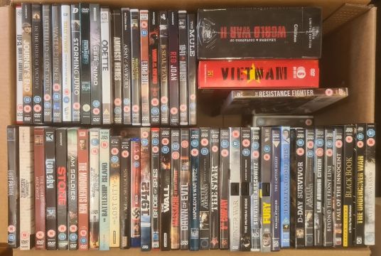 Militaria, three boxes of books and DVDs on the subject of war, to include Burt & Leasor "The One That Got Away", published Pen & Sword, Ian Ousby "Occupation the Ordeal of France 1940-1944", published Pimlico, etc (3 boxes) BOOKS NOT COLLATED UNLESS OTHERWISE STATED, PLEASE ENSURE YOU ARE SATISFIED BEFORE YOU BID