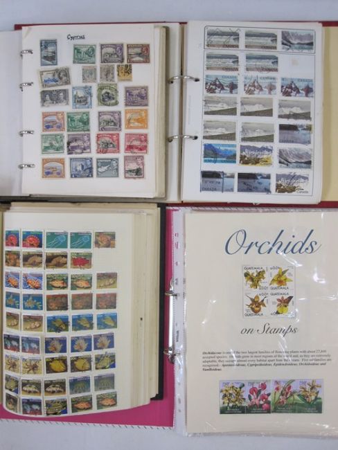 Eight albums of stamps, miscellaneous material, mostly Commonwealth, Cyprus, Ceylon, Australia, etc., album of orchids etc.