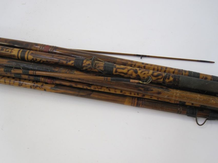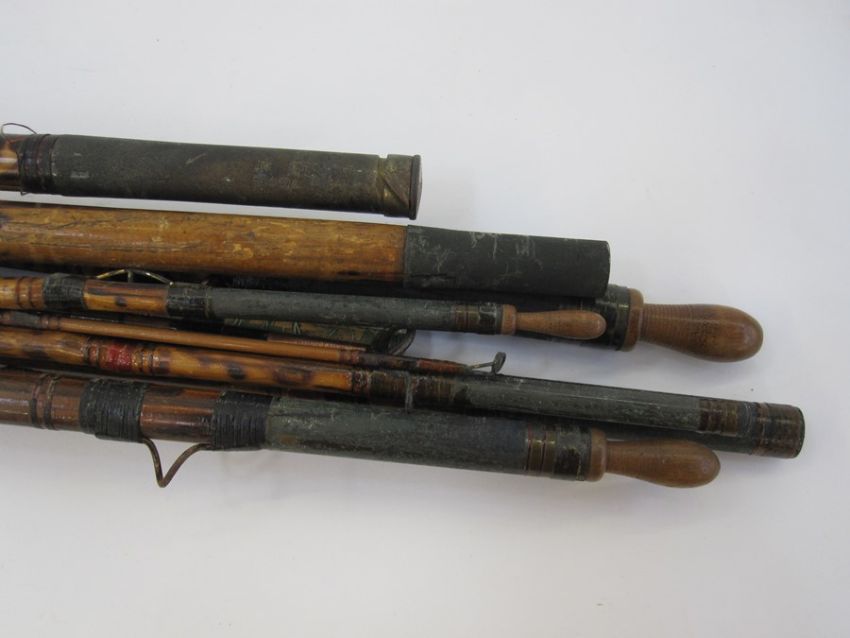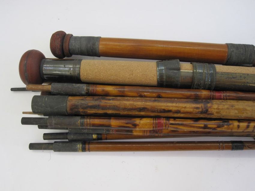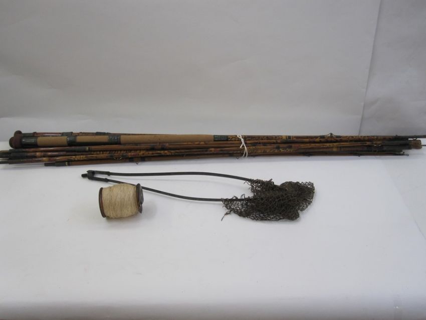 Various cane and other fishing rods, a reel and a net
