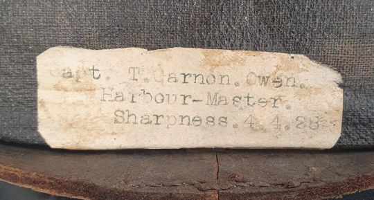 Pair of binoculars marked 'Calvert & Co, Goole, Hezzanith' in case with paper label 'Capt. T.Garnon. Owen. Harbour-Master. Sharpness .4.4.28'