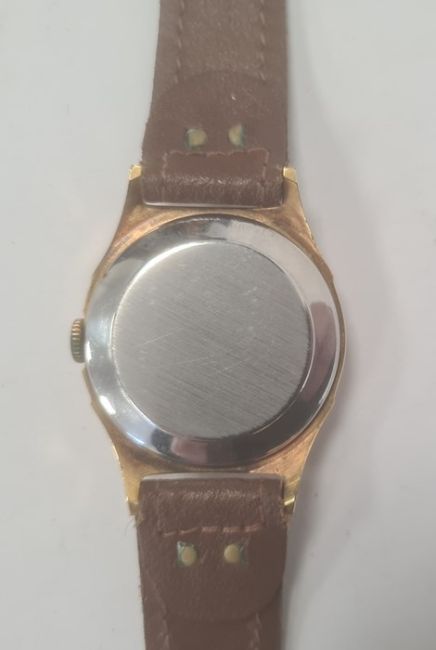 Gentleman's Smith's gilt metal strap watch, the circular dial with Arabic numeralsCondition ReportThere is no "Made in England" mark.  Watch is running and hands moving but unable to state whether in full working order.  Hands set ok.