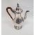 A silver plated coffee pot, wooden handle on a circular base, unmarked, etched V EL to base, 29cm high approx.