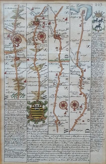 Coloured map of London to Gosport from Patersons Itinerary, another Christchurch to Winchester, another Wantage to Poole and after W Hughes 'Map of the Meets of Mr Drax's Hounds' (4)