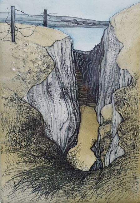 Maureen Black - 20th centuryArtist proof etching"Evening in Collioune", signed and titled in pencil, and numbered AP 1 of 4, 33 x 43cm andElizabeth Morris - 20th centuryLimited edition etching"Cleft" , signed, titled and numbered 20/50 in pencil, 31 x 21cm (2)