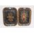 Two old japanned metal trays, rectangular but with integral handles and having painted floral decoration to the black ground, 51cm high