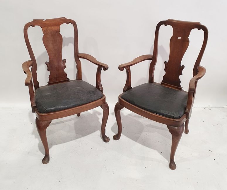 Set of four late 19th/early 20th century armchairs with shaped top rail, on vase-shaped back splat, drop-in seats, on cabriole legs (4)