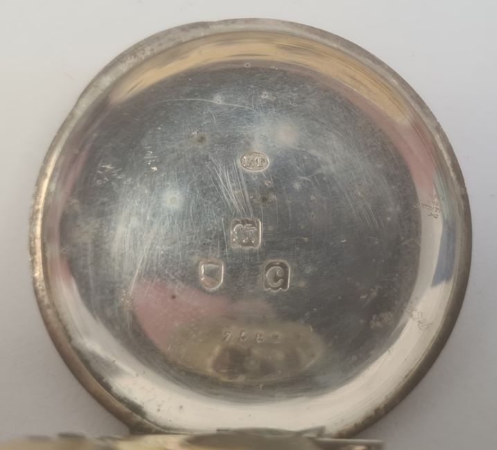 Silver half hunter pocket watch, the enamel dial with roman numerals and subsidiary seconds dial, inscribed '7582', the movement inscribed 'For the Army and Navy Cooperative Society' and the outer case with blue enamel roman numerals