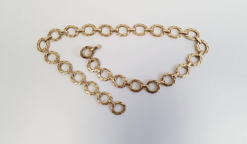 9ct gold necklace, of flattened oval links, approx. 48g