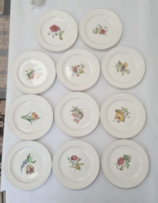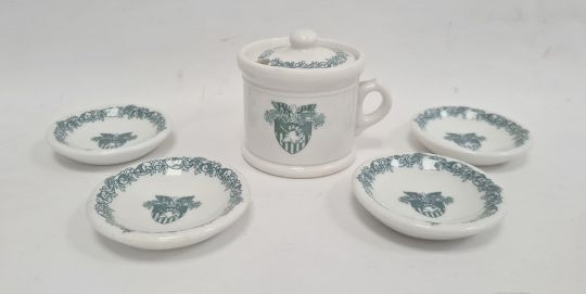 11 Wedgwood US Military Academy West Point, New York 'From US to New York' pottery plates, views of the Academy, pottery mustard and four butter dishes bearing West Point Coat of Arms and 11 Copeland Spode cream pottery botanical plates