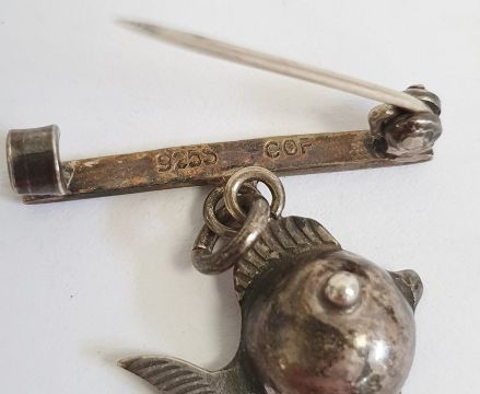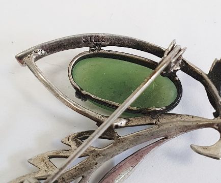 Norwegian silver and enamel brooch of fan-shape, painted with a rose on a white ground and various other items