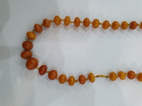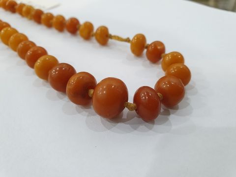 Single row of graduated butterscotch amber beads, largest bead approx 1.3cm x 1.1cm. 23.8gCondition ReportWight approx 24 grams.