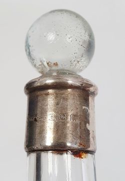 Late Edwardian silver-mounted glass double oil and vinegar decanter with clear glass stoppers, 17cm high