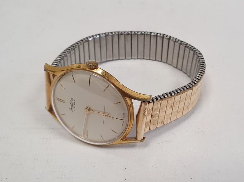 Gentleman's gilt metal Bentima star bracelet watch, the circular dial with subsidiary seconds dial on expanding bracelet strap