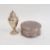 Early Victorian silver pepperette, London 1837 (marks rubbed), of baluster form with weighted base, 10cm high and a silver dressing table box by Hampton Utilities, Birmingham 1924, of plain circular form with hinged cover and three ball feet, 9cm diameter (2)