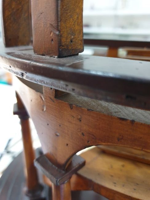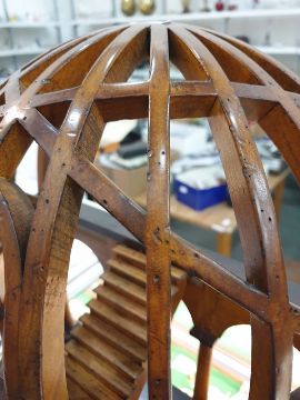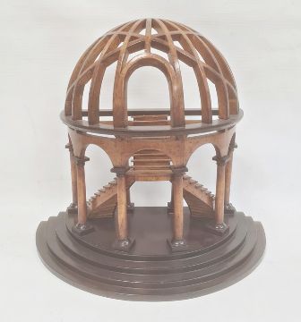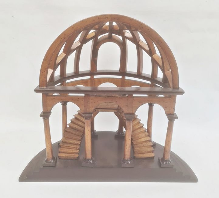 Partly ebonised wood architectural model of a round arch enclosing twin flights of stairs, all on ebonised stepped plinth base, 46cm highCondition ReportSome minor dents and chips, some possible wood worms holes (don't appear active).