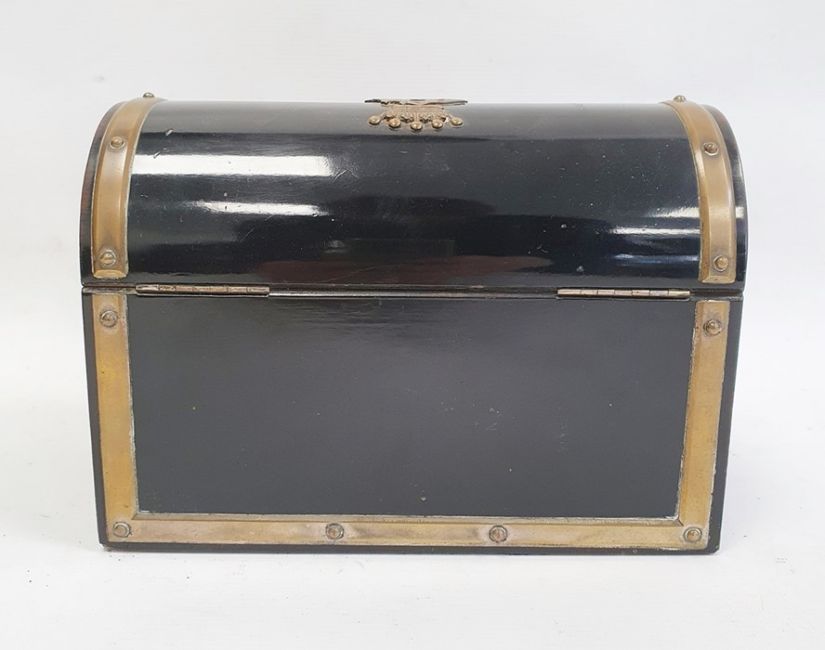 Black lacquered domed top letter case, brass bound with brass insignia mark 'From General Gascoigne", opening to reveal fitted interior, 23cm x 16cm