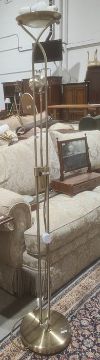 Modern standard lamp with integral spotlamp on brushed finish column