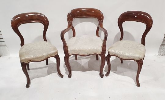 Matched set of three upholstered chairs (2+1) together with two similar (5)