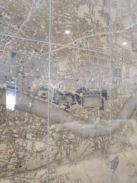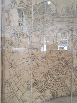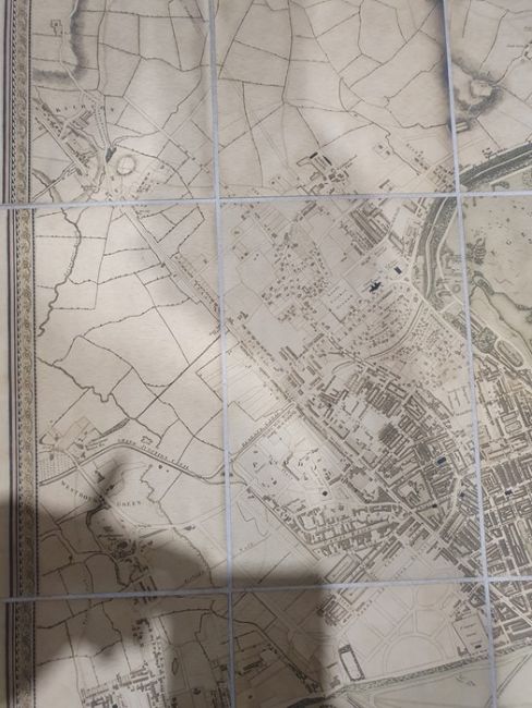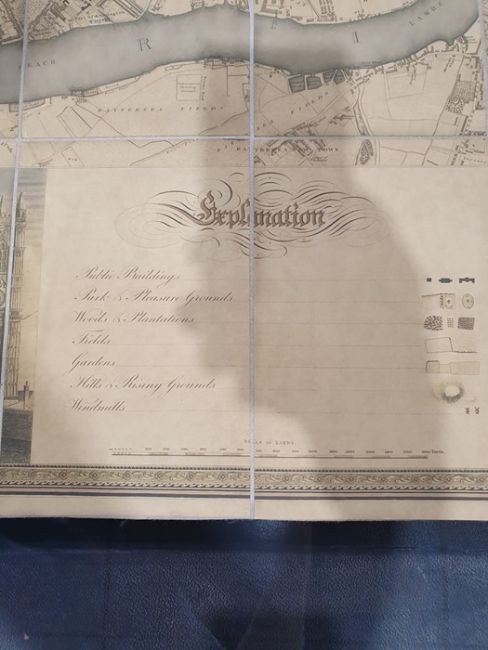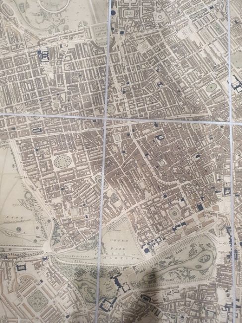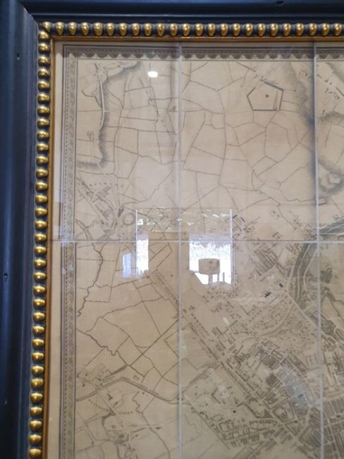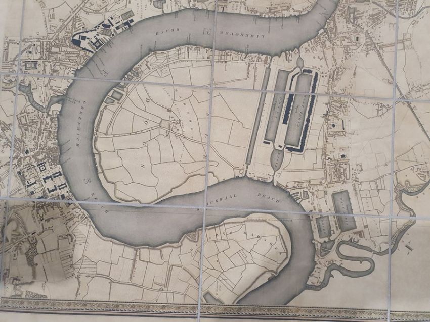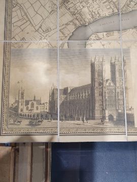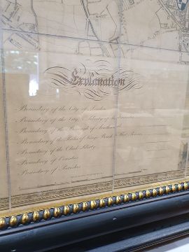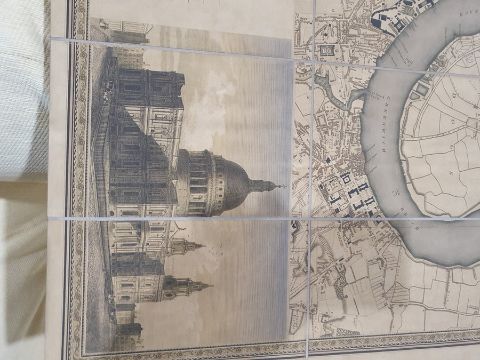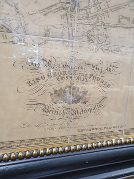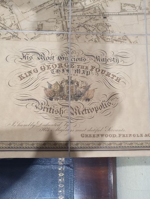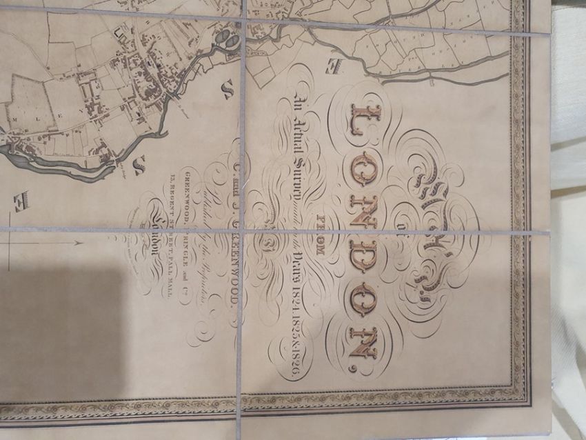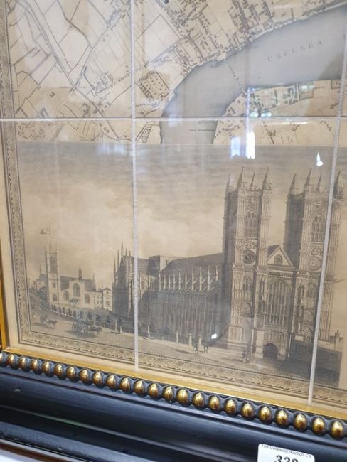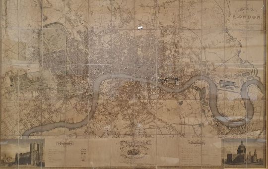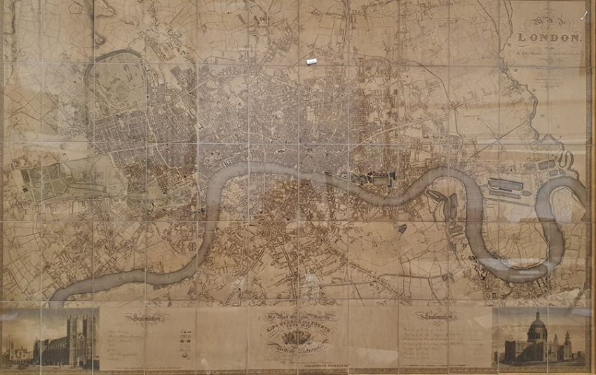'Map of London from an actual survey made in the years 1824, 1825 and 1826', published by Greenwood Pringle & Co, with key and engraving of Westminster Abbey and St Paul's, the canvas backed folding map now under a glazed frame, 96cm x 151cm ************ WITHDRAWN ****************