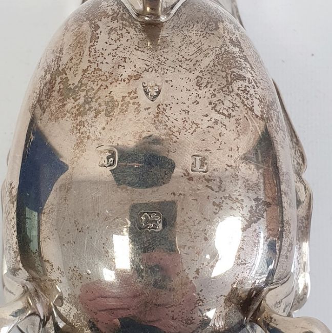 1930's silver sauceboat with scalloped edge, on spade feet, Birmingham 1935, maker JB Chatterley & Sons Ltd, 6ozt approx