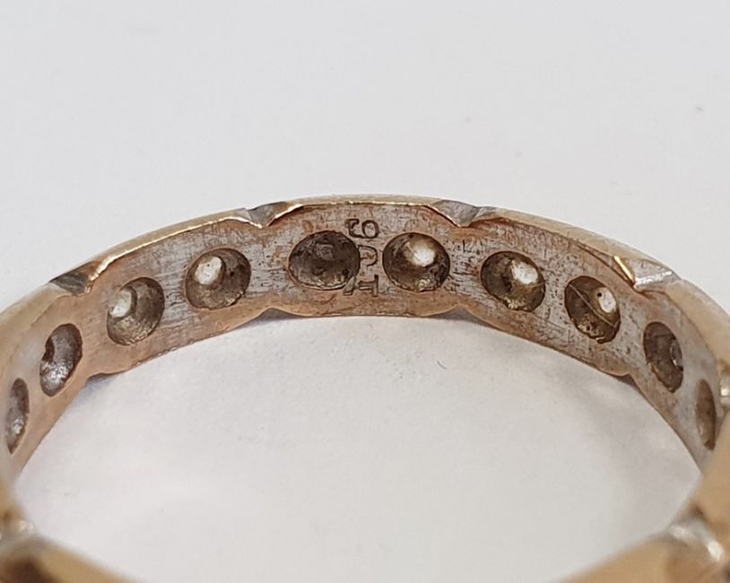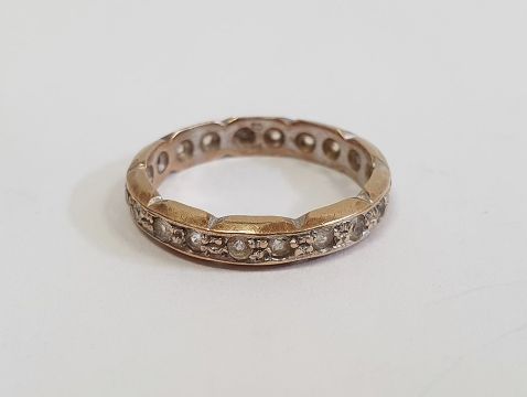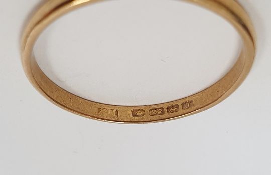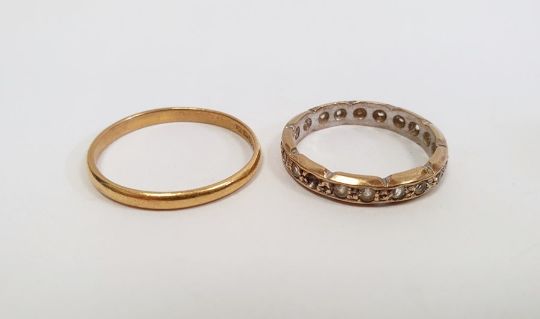 22ct gold wedding ring, narrow and worn, approx. 2g and  a 9ct gold ring set tiny diamonds (two stones missing) (2) CHANGED TO 9CT