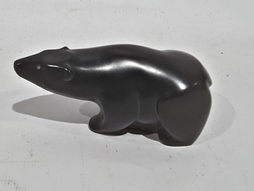 Canadian 'Boma' bear, carved stone, signed and sticker to base