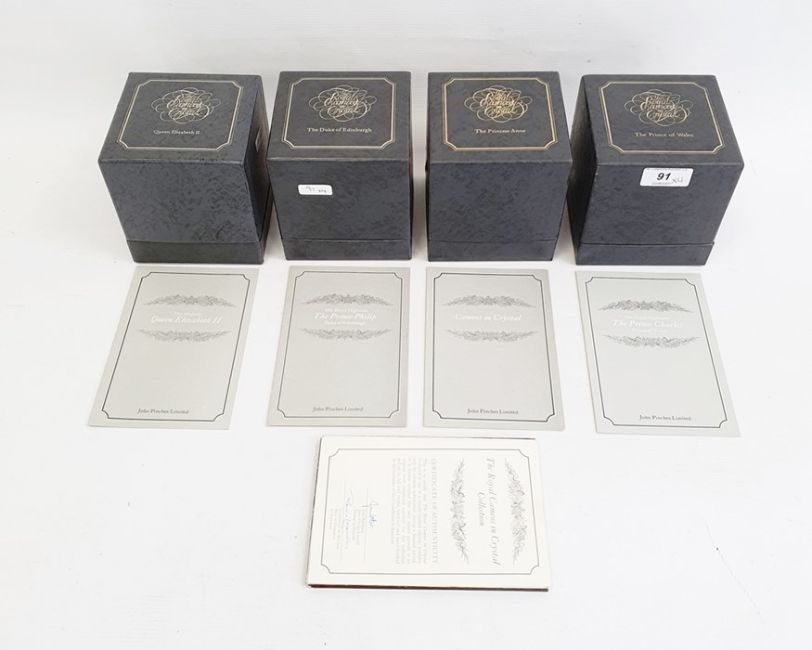 Group of four Baccarat "The Royal Cameos in Crystal" to include Queen Elizabeth II, Prince Phillip, Prince Charles and Princess Anne (4)