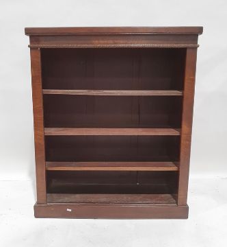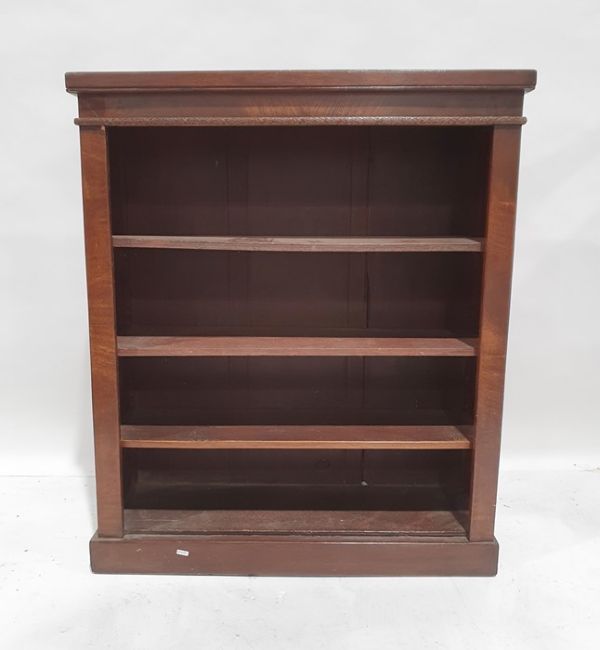 Mahogany open bookcase, the rectangular top above adjustable shelving, on plinth base, 89.5cm x 106cm x 30cm deep