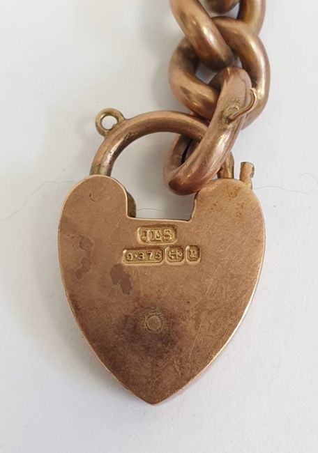 Gold curb link bracelet, marked 9ct, with 9ct gold padlock clasp, approx. 15gCondition ReportThe coin is a silver 1901 six pence.