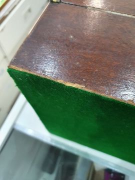 Some surface scratches, scuffs and knocks to the wood. Somme small chips at the base. Areas of fading, discolouration and accretions. Tarnishing and wear to the brass. General wear and tear. See photos.