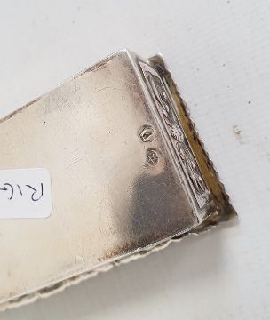 Silver cigarette box by Abrahams Bros, Birmingham 1927 of rectangular form with engine-turned decoration, 7cm long and a silver-coloured rectangular box, possibly Spanish, the hinged cover with scrolling decoration, 9cm long (2)