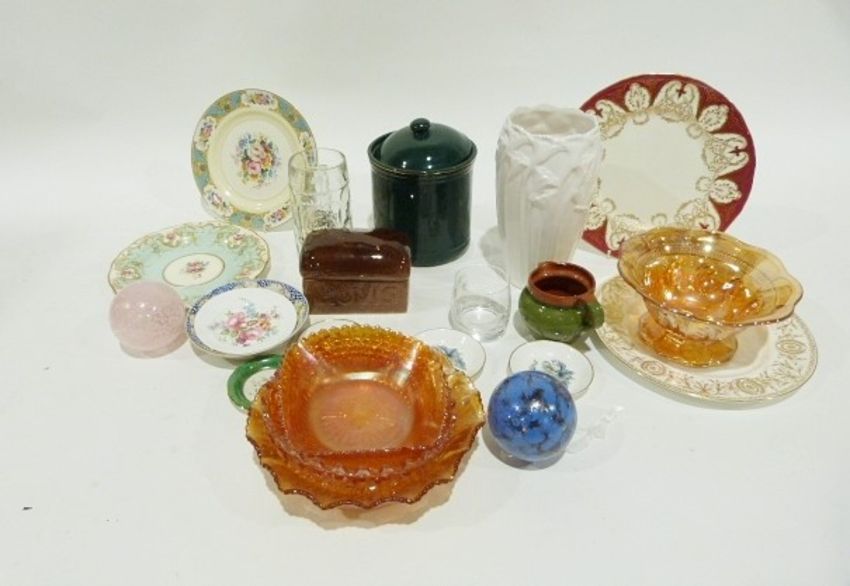 Denby stoneware jug, a quantity of white dinnerware,  a quantity of drinking glasses and various other ceramics and glass ( 3 boxes)