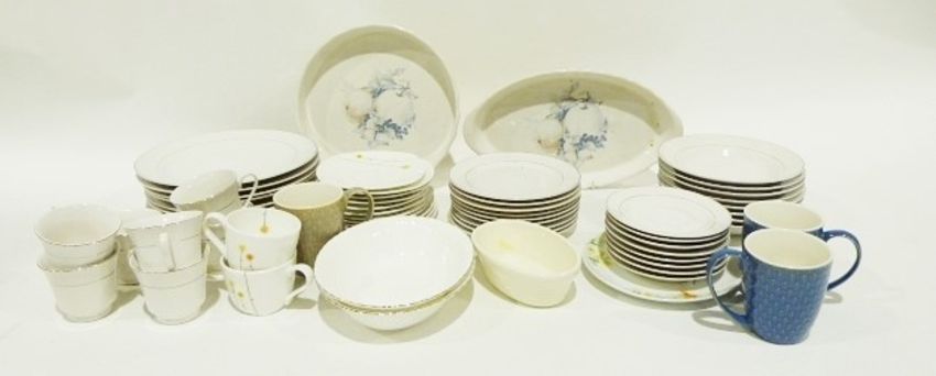 Modern wall clock and a quantity of white dinnerware (2 boxes)