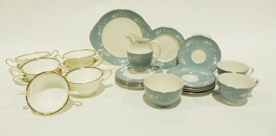 Box of assorted ceramics including a Royal Doulton Reflection pattern part-tea service, Wedgwood etc., a box of drinking glasses and various other items (3 boxes)